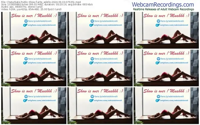 There are a total of 1,131 recordings (1,304 hours) of arte_adelle from Chaturbate and Stripchat available below.