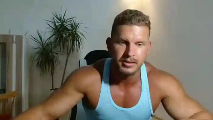 His birthday is December 6th 1999 making him 26 years old, and the average age of models on Flirt4Free is 25—making him one of the older models. His height is 180cm, and his weight is 95kg. He identifies his ethnicity as caucasian. He has a shaved pubic hair, muscular body with blue eyes and short brown hair.