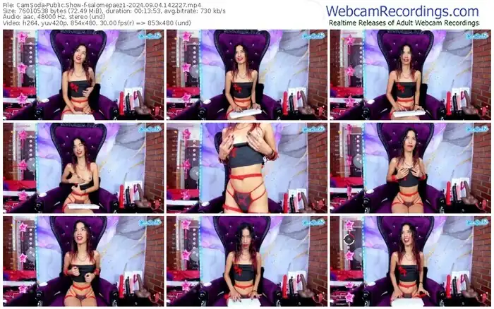 There are a total of 1,003 recordings (545 hours) of salomepaez1 from CamSoda available below.