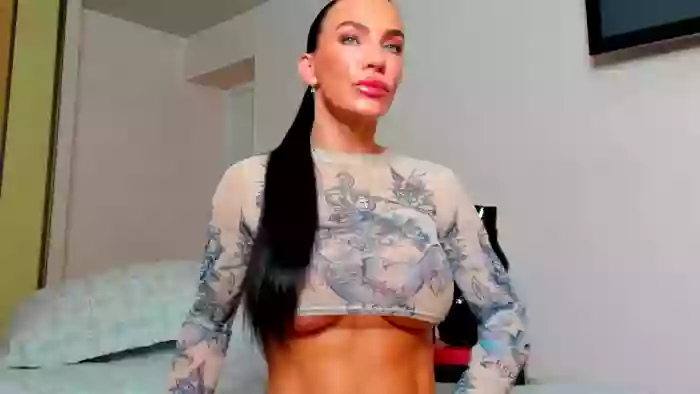 She is 34 years old, and the average age of models on Streamate is 30—making her one of the older models. Her height is 5'8, and her weight is 137 lbs. She identifies her ethnicity as white. She has a dd/e cup size breasts, bald pubic hair on a muscular body with blue eyes and brown hair.Her body art includes piercings.
