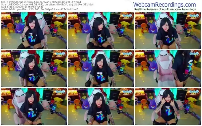There are a total of 935 recordings (744 hours) of ambarevans from CamSoda, MFC, Bongacams, and Stripchat available below.