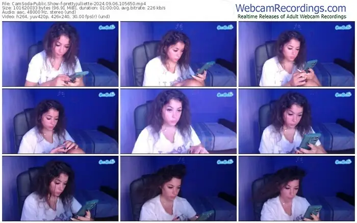 There are a total of 8 recordings (7 hours) of prettyjulliette from CamSoda available below.