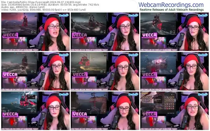 There are a total of 1,296 recordings (1,155 hours) of veccasalt from CamSoda available below.