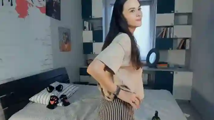Her birthday is August 21st 2005 making her 19 years old, and the average age of models on Flirt4Free is 25—making her one of the younger models. Her height is 175cm, and her weight is 45kg. She identifies her ethnicity as mixed. She has a shaved pubic hair, and c cup breasts on a athletic body with brown eyes and long brown hair.Her body art includes piercings.