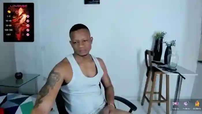 His birthday is July 25th 1991 making him 34 years old, and the average age of models on Flirt4Free is 25—making him one of the older models. His height is 184cm, and his weight is 78kg. He identifies his ethnicity as black. He has a natural pubic hair, athletic body with brown eyes and short black hair.His body art includes tattoo(s).