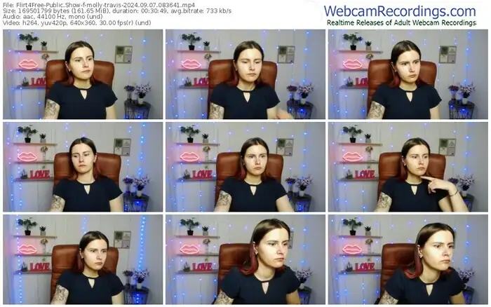 There are a total of 1,093 recordings (543 hours) of molly-travis from Flirt4Free available below.