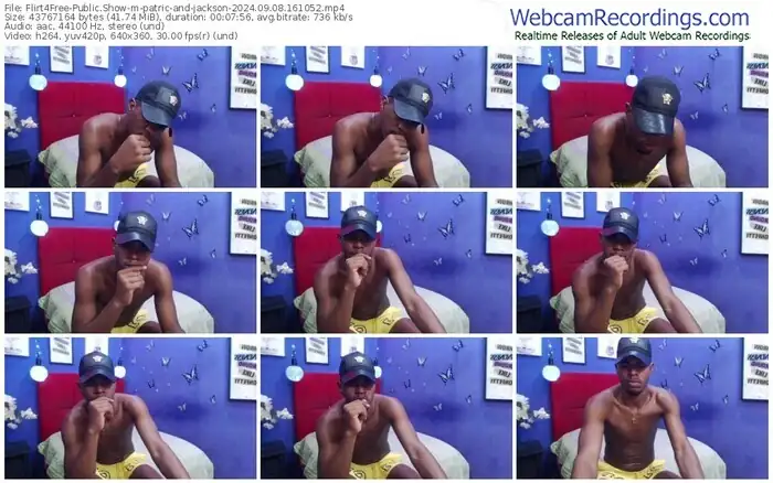 There are a total of 184 recordings (124 hours) of patric-and-jackson from Flirt4Free available below.