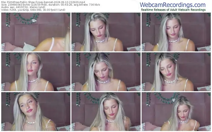 There are a total of 381 recordings (193 hours) of zoey-bennet from Flirt4Free available below.