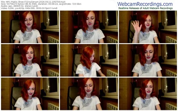 There are a total of 51 recordings (21 hours) of GinyGerson from MyFreeCams available below.