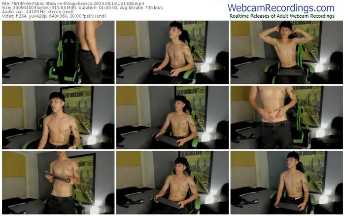 There are a total of 157 recordings (98 hours) of thiago-bianco from Flirt4Free available below.
