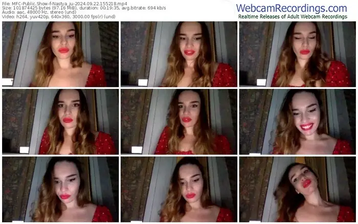 There are a total of 15 recordings (5 hours) of Nastya_ju from MyFreeCams available below.