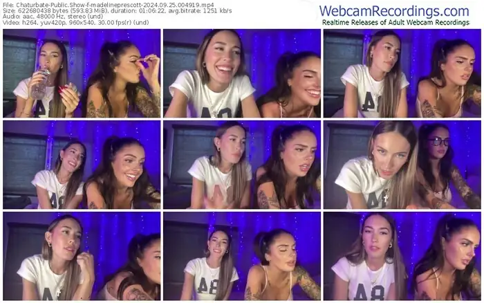 There are a total of 15 recordings (9 hours) of madelineprescott from Chaturbate available below.