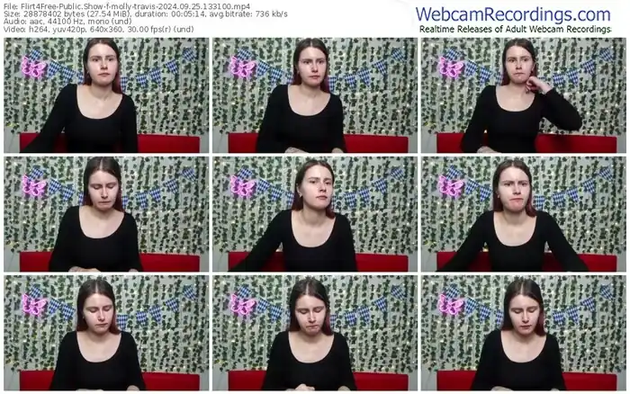 There are a total of 1,093 recordings (543 hours) of molly-travis from Flirt4Free available below.