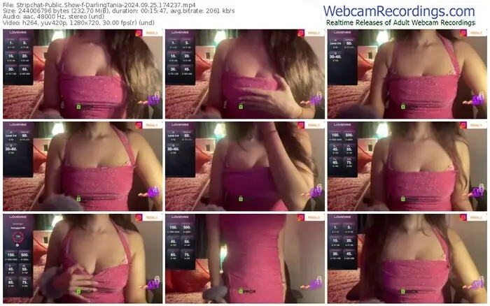 There are a total of 374 recordings (170 hours) of DarlingTania from Stripchat available below.