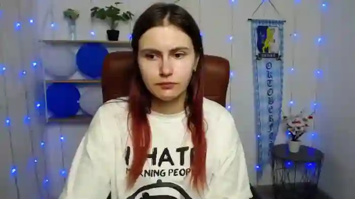 Her birthday is October 9th 2001 making her 24 years old, and the average age of models on Flirt4Free is 25—making her one of the younger models. Her height is 167cm, and her weight is 51kg. She identifies her ethnicity as other. She has a shaved pubic hair, and b cup breasts on a athletic body with blue eyes and long brown hair.Her body art includes piercings, tattoo(s).