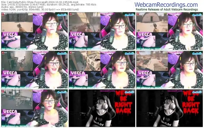 There are a total of 1,145 recordings (1,023 hours) of veccasalt from CamSoda available below.