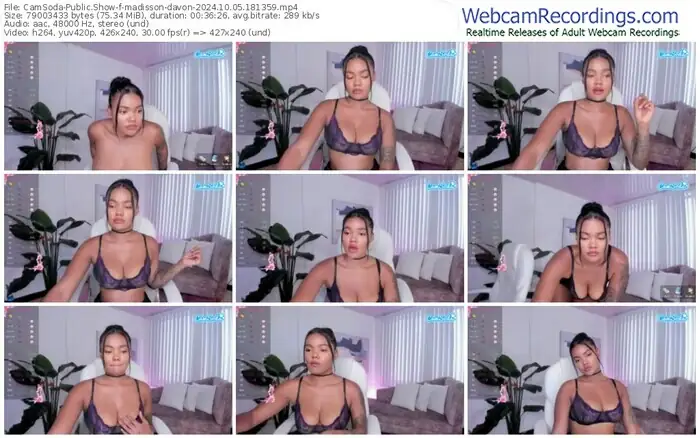 There are a total of 119 recordings (72 hours) of madisson-davon from CamSoda available below.