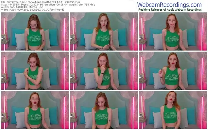 There are a total of 2,819 recordings (1,473 hours) of lina-lewitt from Flirt4Free available below.