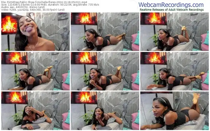 There are a total of 3,745 recordings (1,517 hours) of michelle-flores from Flirt4Free available below.