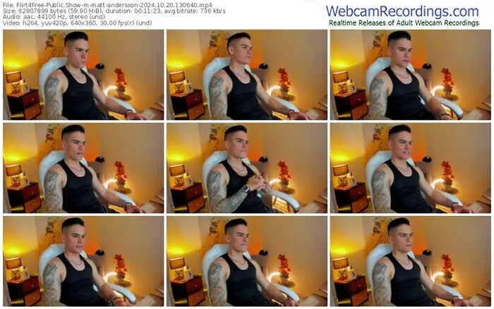 There are a total of 1,839 recordings (1,379 hours) of matt-andersson from Flirt4Free available below.