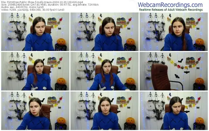 There are a total of 1,093 recordings (543 hours) of molly-travis from Flirt4Free available below.