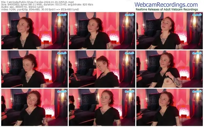 There are a total of 42 recordings (17 hours) of scolw from CamSoda and Stripchat available below.