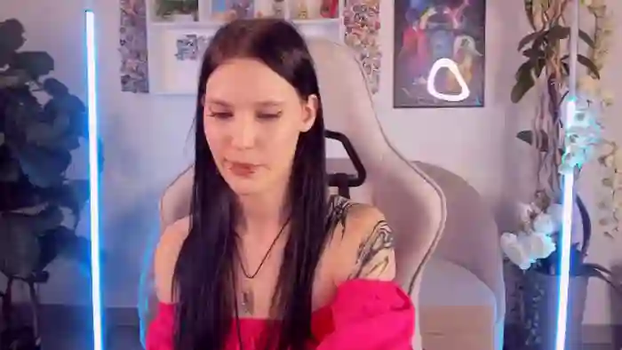 Her birthday is September 22nd 2005 making her 19 years old, and the average age of models on Flirt4Free is 25—making her one of the younger models. Her height is 172cm, and her weight is 53kg. She identifies her ethnicity as caucasian. She has a shaved pubic hair, and b cup breasts on a slim body with grey eyes and long black hair.Her body art includes piercings, tattoo(s).