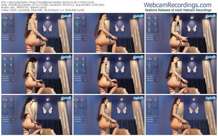 There are a total of 7 recordings (6 hours) of maddyhernandez from CamSoda available below.
