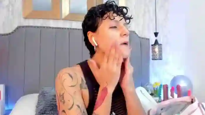 Her birthday is November 11th 2005 making her 19 years old, and the average age of models on Flirt4Free is 25—making her one of the younger models. Her height is 150cm, and her weight is 40kg. She identifies her ethnicity as hispanic. She has a shaved pubic hair, and a cup breasts on a slim body with grey eyes and short black hair.Her body art includes piercings, tattoo(s).