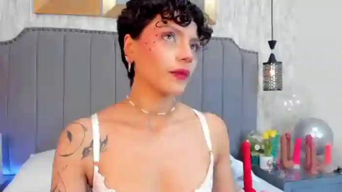 Her birthday is November 11th 2005 making her 19 years old, and the average age of models on Flirt4Free is 25—making her one of the younger models. Her height is 150cm, and her weight is 40kg. She identifies her ethnicity as hispanic. She has a shaved pubic hair, and a cup breasts on a slim body with grey eyes and short black hair.Her body art includes piercings, tattoo(s).