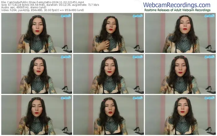There are a total of 80 recordings (39 hours) of eimytatto from CamSoda available below.