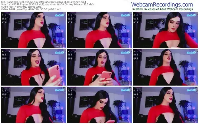 There are a total of 158 recordings (107 hours) of misstresshotsexy from CamSoda and XloveCam available below.