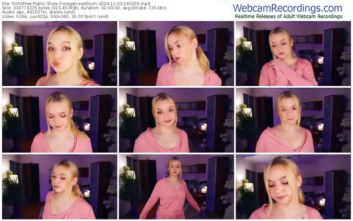 There are a total of 1,485 recordings (989 hours) of megan-eastburn from Flirt4Free available below.