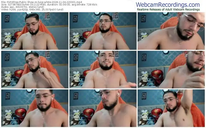 There are a total of 3,003 recordings (2,704 hours) of luigi-white from Flirt4Free available below.