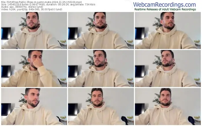 There are a total of 77 recordings (30 hours) of justin-mate from Flirt4Free available below.