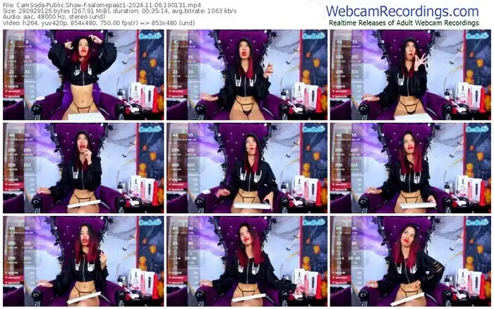 There are a total of 1,002 recordings (545 hours) of salomepaez1 from CamSoda available below.