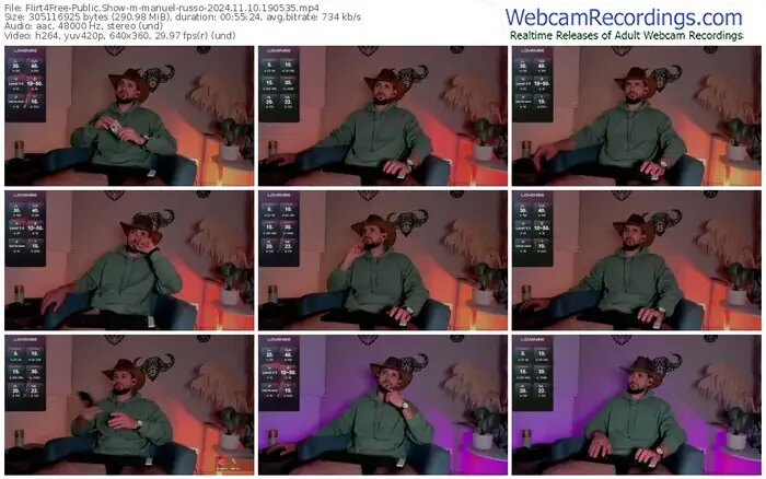 There are a total of 279 recordings (166 hours) of manuel-russo from Flirt4Free available below.