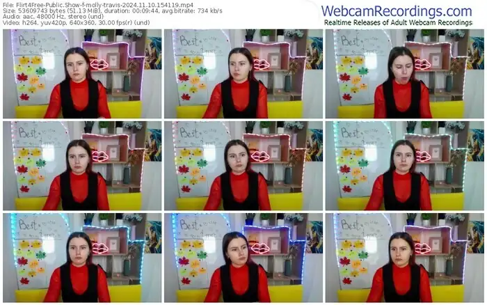 There are a total of 1,093 recordings (543 hours) of molly-travis from Flirt4Free available below.