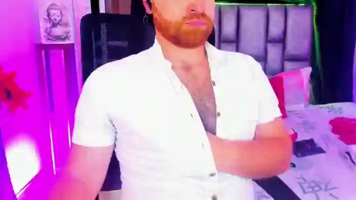 His birthday is June 29th 1999 making him 26 years old, and the average age of models on Flirt4Free is 25—making him one of the older models. His height is 175cm, and his weight is 65kg. He identifies his ethnicity as mixed. He has a natural pubic hair, muscular body with brown eyes and short red hair.His body art includes piercings.