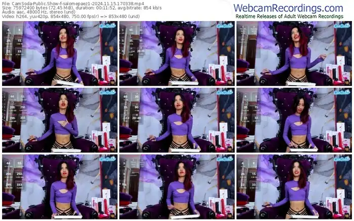 There are a total of 1,002 recordings (545 hours) of salomepaez1 from CamSoda available below.