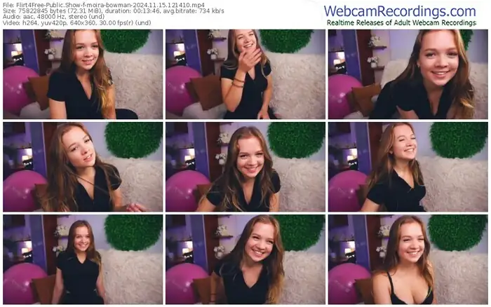 There are a total of 1,261 recordings (815 hours) of moira-bowman from Flirt4Free available below.