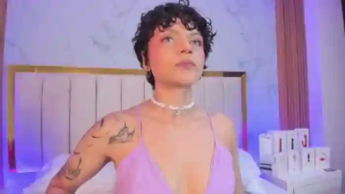 Her birthday is November 11th 2005 making her 19 years old, and the average age of models on Flirt4Free is 25—making her one of the younger models. Her height is 150cm, and her weight is 40kg. She identifies her ethnicity as hispanic. She has a shaved pubic hair, and a cup breasts on a slim body with grey eyes and short black hair.Her body art includes piercings, tattoo(s).