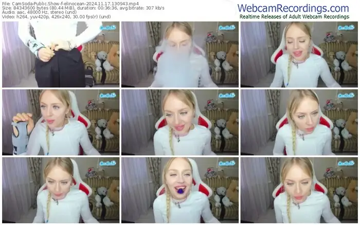 There are a total of 39 recordings (22 hours) of elinocean from CamSoda available below.