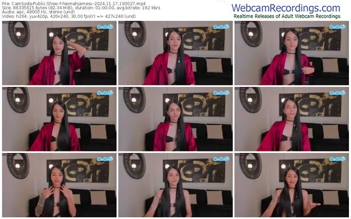 There are a total of 186 recordings (163 hours) of hannahjamesx from CamSoda, Stripchat and CherryTV available below.