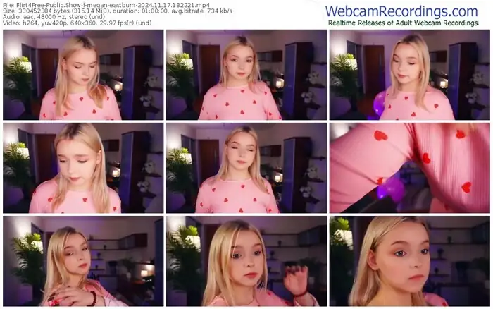There are a total of 1,485 recordings (989 hours) of megan-eastburn from Flirt4Free available below.
