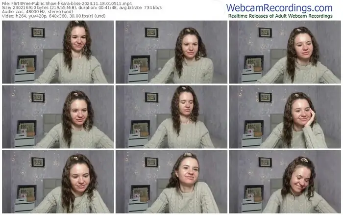 There are a total of 2,390 recordings (1,029 hours) of kara-bliss from Flirt4Free available below.