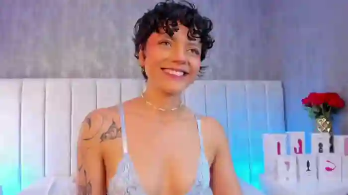 Her birthday is November 11th 2005 making her 19 years old, and the average age of models on Flirt4Free is 25—making her one of the younger models. Her height is 150cm, and her weight is 40kg. She identifies her ethnicity as hispanic. She has a shaved pubic hair, and a cup breasts on a slim body with grey eyes and short black hair.Her body art includes piercings, tattoo(s).