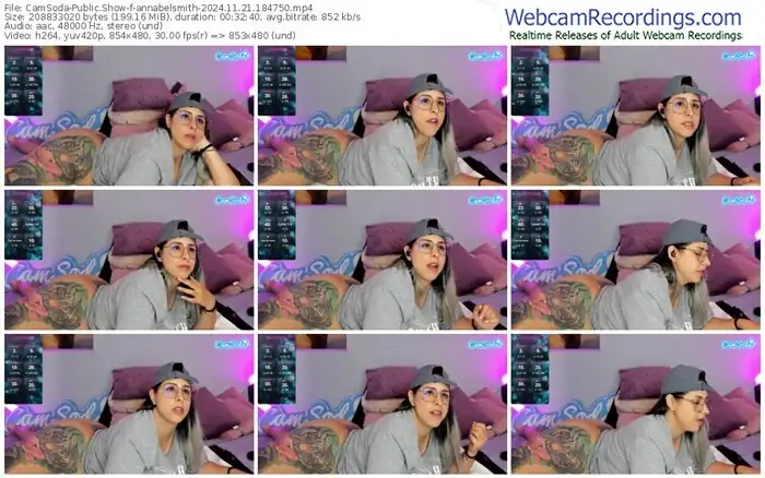 There are a total of 505 recordings (316 hours) of annabelsmith from CamSoda available below.