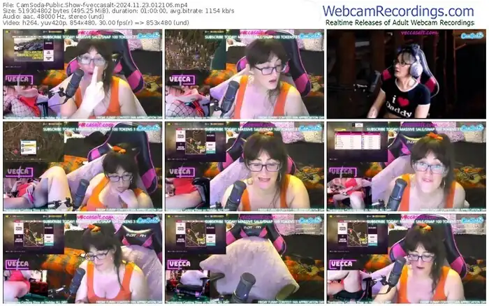 There are a total of 1,145 recordings (1,023 hours) of veccasalt from CamSoda available below.