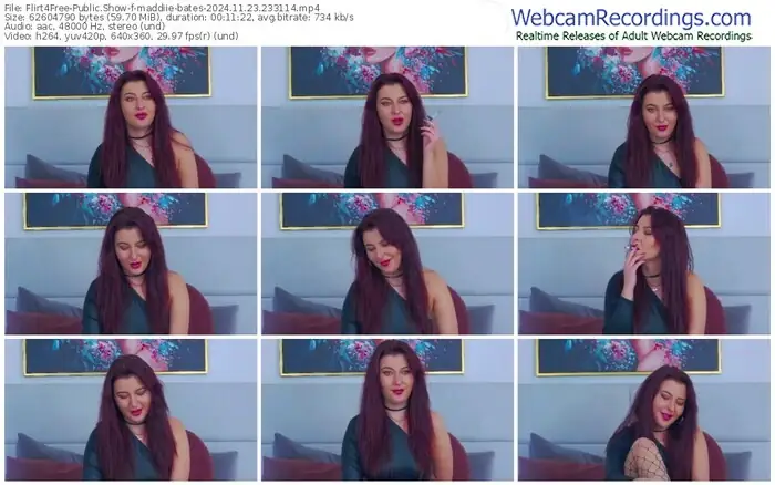 There are a total of 149 recordings (75 hours) of maddiie-bates from Flirt4Free available below.